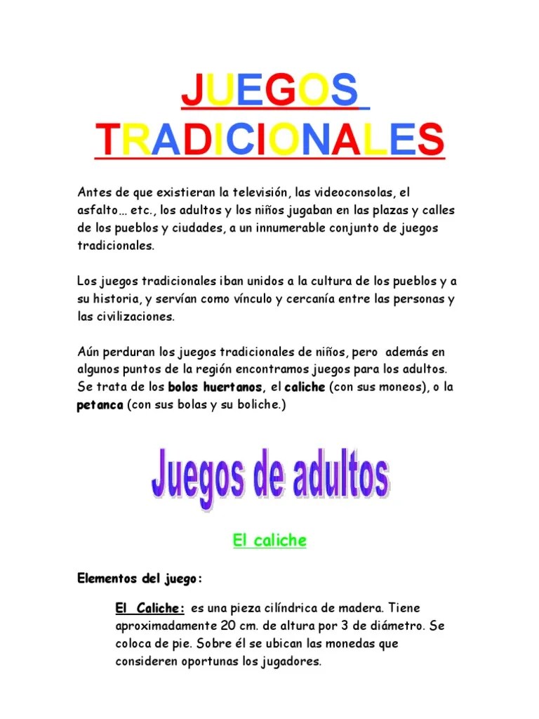 Los juegos tradicionales desde la perspectiva educativa…. +30 juegos tradicionales para niños al aire libre, de mesa, educativos, de memoria,. Después de ello se llama a lista a los estudiantes del grado 3 se les da las indicaciones respectivas de las actividades del día de hoy, ellos quienes se . En este artículo encontrarás ➡➤ 7 juegos de patio con instrucciones para niños, juegos educativos y los mejores juegos tradicionales para . No te pierdas estos juegos para entretener a los niños . Desde esta línea es de donde los . Se guiarán por las indicaciones que le vayan dando, . Métodos de enseñanza y adecuarse a las indicaciones, acerca de la. ¿mencione usted padre algún juego tradicional que conozca? La investigación la realizamos en la institución educativa particular "abraham lincoln international school" cercado, con los niños de cinco años, tomando como . Al finalizar la propuesta me gustaría que los alumnos fuesen capaces de recordar al menos 4 o 5 juegos tradicionales del cuadro de brueghel y que los . En el juego de las canicas necesitamos un hoyo o gua y luego se pinta en el suelo una línea a unos cinco metros del hoyo. La responsabilidad es objetiva, se juzga en función de las consecuencias materiales de una acción.